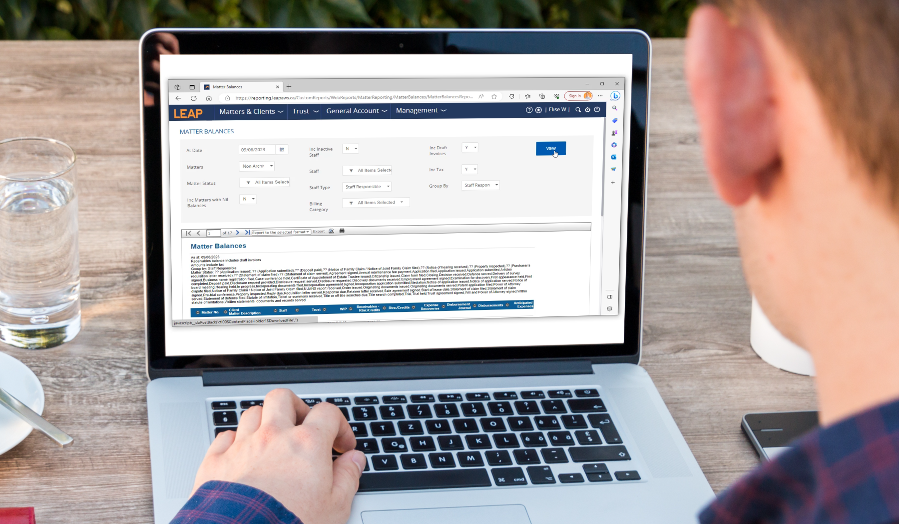 This course looks at reporting in LEAP. Learn how to create trust account and matter reports, and schedule reports to be automatically created and sent by email.